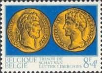1.50-franc postage stamp depicts a 1-franc coin of Belgium, and a 1-franc coin of Luxembourg.