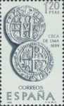 1.20-peseta stamp depicts 1699 coins of Lima.