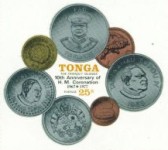 10-, 15-, 25-, 50-, 75-seniti stamps depict seven different coins. 11-, 17-, 18-, 39-seniti, 1-pa'anga airmail stamps depict coronation coin. 20-, 40-, 80-seniti airmail official stamps depict coronation coin.