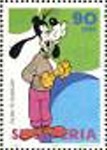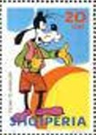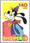 Unnamed, uncredited, apparently Disney's Goofy. Stamp values are 20, 50, 90, and 140 lek.