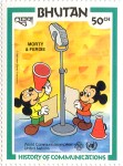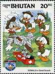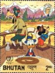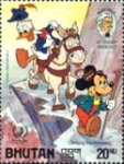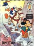 20-ngultrum stamp depicts Donald Duck and Mickey Mouse;