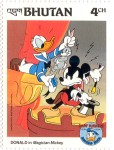 20-ngultrum stamp depicts Mickey Mouse and Donald Duck;