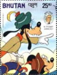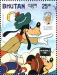 25-ngultrum stamp depicts Goofy and Mickey Mouse.