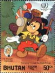 A listing of postage stamps of Bhutan depicting Walt Disney Company-related themes.