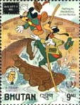 9-ngultrum stamp depicts Mickey Mouse and Goofy;