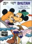 25-ngultrum stamp depicts Mickey Mouse and Minnie Mouse.