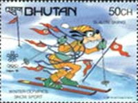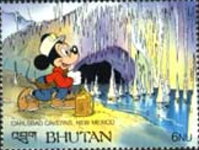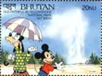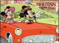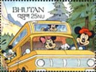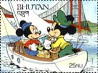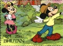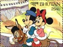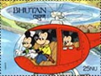 A listing of postage stamps of Bhutan depicting Walt Disney Company-related themes.