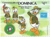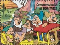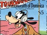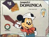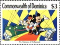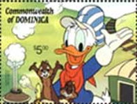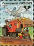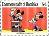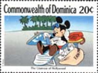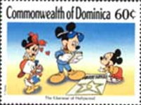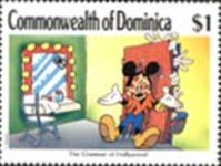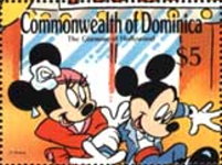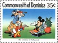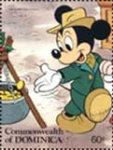 A listing of postage stamps of Dominica depicting Walt Disney Company-related themes.