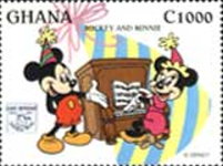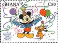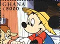 A listing of postage stamps of Ghana depicting Walt Disney Company-related themes.