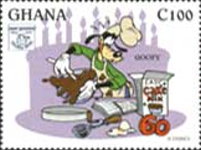 100-cedi stamp depicts Goofy;