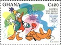 400-cedi stamp depicts Donald Duck and Pluto;