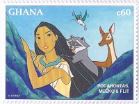 60-cedi stamp depicts Pocahontas;