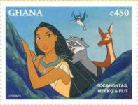 450-cedi stamp depicts Pocahontas;