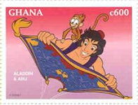 600-cedi stamp depicts Aladdin and Abu;