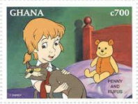700-cedi stamp depicts Penny and Rufus;