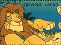 3000-cedi stamp depicts Simba and Timon.