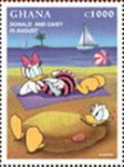 1000-cedi stamp depicts Daisy Duck and Donald Duck;