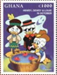 1000-cedi stamp depicts Huey, Dewey, and Louie;