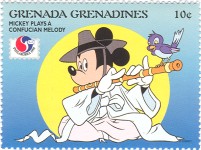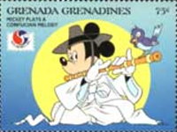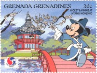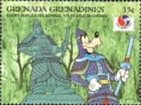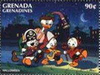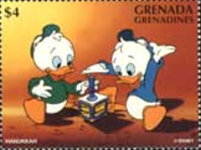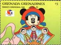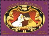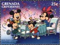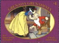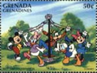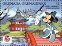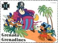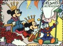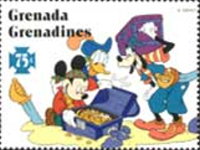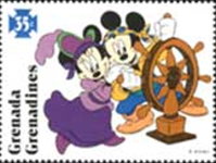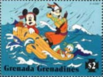A listing of postage stamps of Grenada Grenadines depicting Walt Disney Company-related themes.