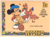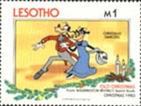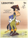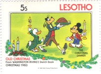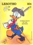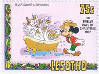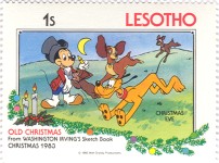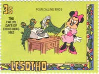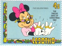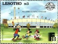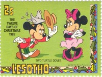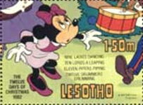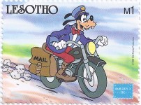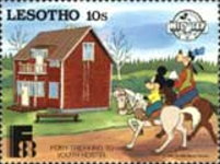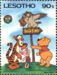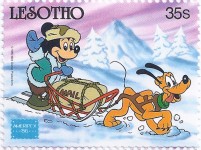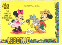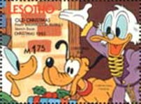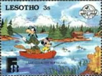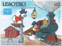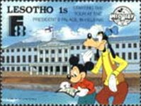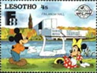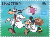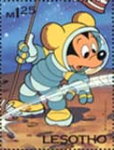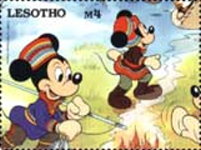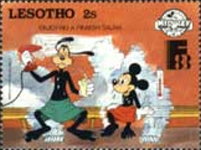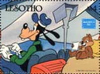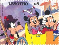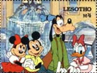 A listing of postage stamps of Lesotho depicting Walt Disney Company-related themes.