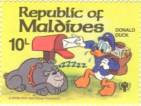 5-rufiyaa stamp depicts Donald Duck;