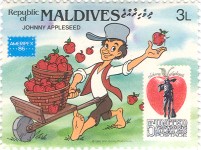 3-laree stamp depicts Johnny Appleseed;