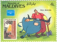 4-laree stamp depicts Paul Bunyan;