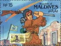 15-rufiyaa stamp depicts Davy Crockett at the Alamo;