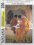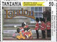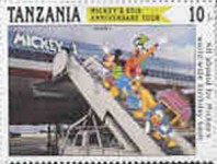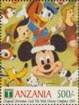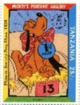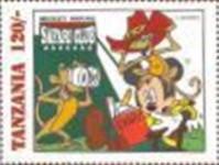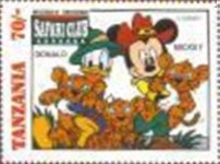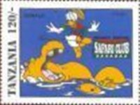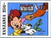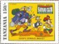 Fifteen postage stamps depicting various Disney characters in the "Safari Club". 70-shilling stamp depicts Donald Duck and Mickey Mouse; 70-shilling stamp depicts Donald Duck and Goofy; 100-shilling stamp depicts Donald Duck; 100-shilling stamp depicts Donald Duck; 120-shilling stamp depicts Donald Duck; 120-shilling stamp depicts Mickey Mouse; 150-shilling stamp depicts Goofy, Donald Duck, and Mickey Mouse; 150-shilling stamp depicts Mickey Mouse, Goofy, and Donald Duck; 200-shilling stamp depicts Donald Duck, Goofy, and Mickey Mouse; 200-shilling stamp depicts Goofy; 250-shilling stamp depicts Mickey Mouse; 250-shilling stamp depicts Donald Duck; 1000-shilling stamp depicts Goofy; 1000-shilling stamp depicts Goofy and Donald Duck; 1000-shilling stamp depicts Mickey Mouse and Donald Duck.
