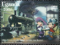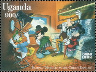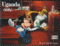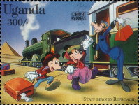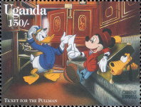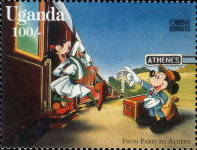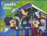 A listing of postage stamps of Uganda depicting Walt Disney Company-related themes.