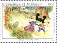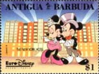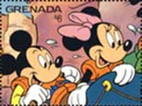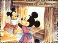 500-shilling stamp depicts Mickey Mouse and Minnie Mouse;