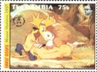 15-dalasy stamp depicts Minnie Mouse and Mickey Mouse;