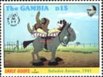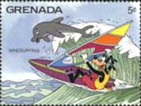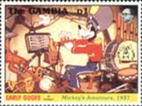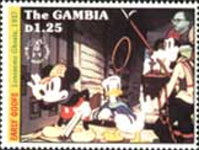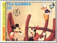 1.50-dalasy stamp depicts Mickey Mouse;
