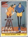 15-rufiyaa stamp depicts Mickey Mouse, Donald Duck, Goofy, and Pluto;
