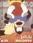 3.50-rufiyaa stamp depicts Mickey Mouse, Goofy, and Donald Duck;