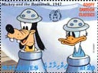 3-rufiyaa stamp depicts Mickey Mouse and Donald Duck;