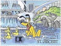 20-shilling stamp depicts Pluto and Mickey Mouse;
