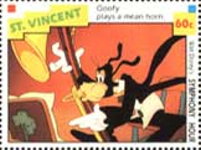 60-cent stamp depicts Goofy and Clarabelle Cow;