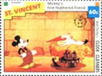 60-cent stamp depicts Clara Cluck and Mickey Mouse;