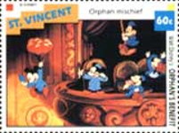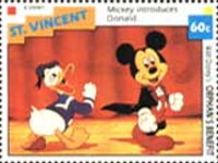 60-cent stamp depicts Donald Duck and Mickey Mouse;