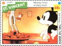 10-cent stamp depicts Mickey Mouse;