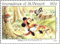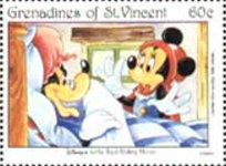 6-leone stamp depicts Minnie Mouse and Pluto;