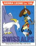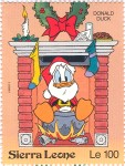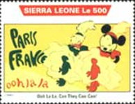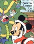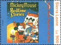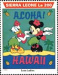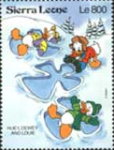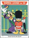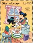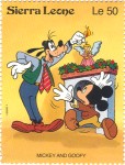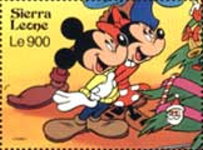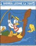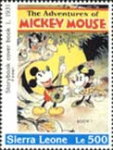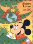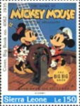 350-leone stamp depicts Mickey Mouse, Donald Duck, and Goofy;