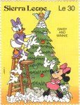 50-leone stamp depicts Minnie Mouse and Mickey Mouse;