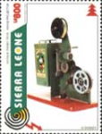 A postage stamp marking the 100 years of motion pictures, including Mickey Mouse.