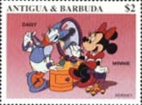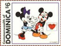 $6 stamp depicts Mickey Mouse; $20 stamp depicts Mickey Mouse, Minnie Mouse, Pluto, Goofy, Daisy Duck, and Donald Duck; $25 stamp depicts Mickey Mouse and Minnie Mouse; $30 stamp depicts Minnie Mouse and Daisy Duck; $35 stamp depicts Daisy Duck, Donald Duck, Goofy, Minnie Mouse, Mickey Mouse, and Pluto; $60 stamp depicts Minnie Mouse and Mickey Mouse; $30 stamp depicts Daisy Duck, Donald Duck, Goofy, Mickey Mouse, Minnie Mouse, and Pluto; $30 stamp depicts Mickey Mouse; $30 stamp depicts Mickey Mouse; $30 stamp depicts Mickey Mouse; $30 stamp depicts Donald Duck, Minnie Mouse, Mickey Mouse, and Goofy; $30 stamp depicts Donald Duck, Minnie Mouse, and Mickey Mouse; $150 stamp depicts Mickey Mouse; $200 stamp depicts Mickey Mouse.