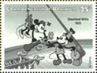 25-cent stamp depicts Mickey Mouse and Minnie Mouse;