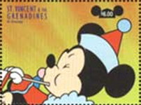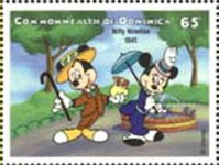 50-leone stamp depicts Mickey Mouse.