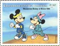 $5 stamp depicts Mickey Mouse and Minnie Mouse;