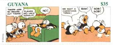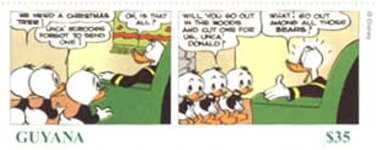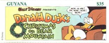 50th anniversary of Scrooge McDuck; comic strip panels of 'Donald Duck's Christmas on Bear Mountain', by Carl Banks.